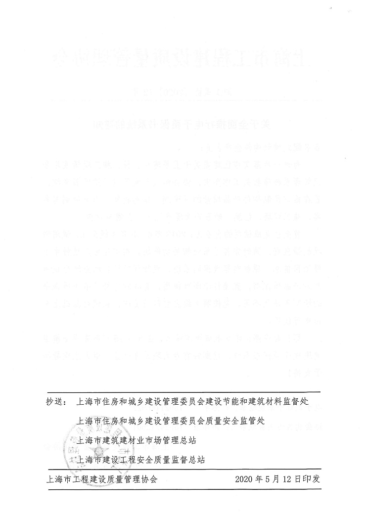 上海市工程建设质量管理协会 2020年5月12日 印发