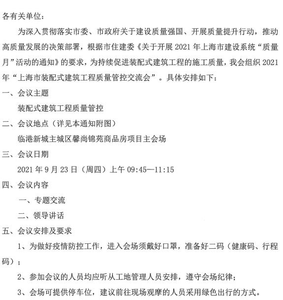关于2021年上海市装配式建筑工程质量管控交流会的通知