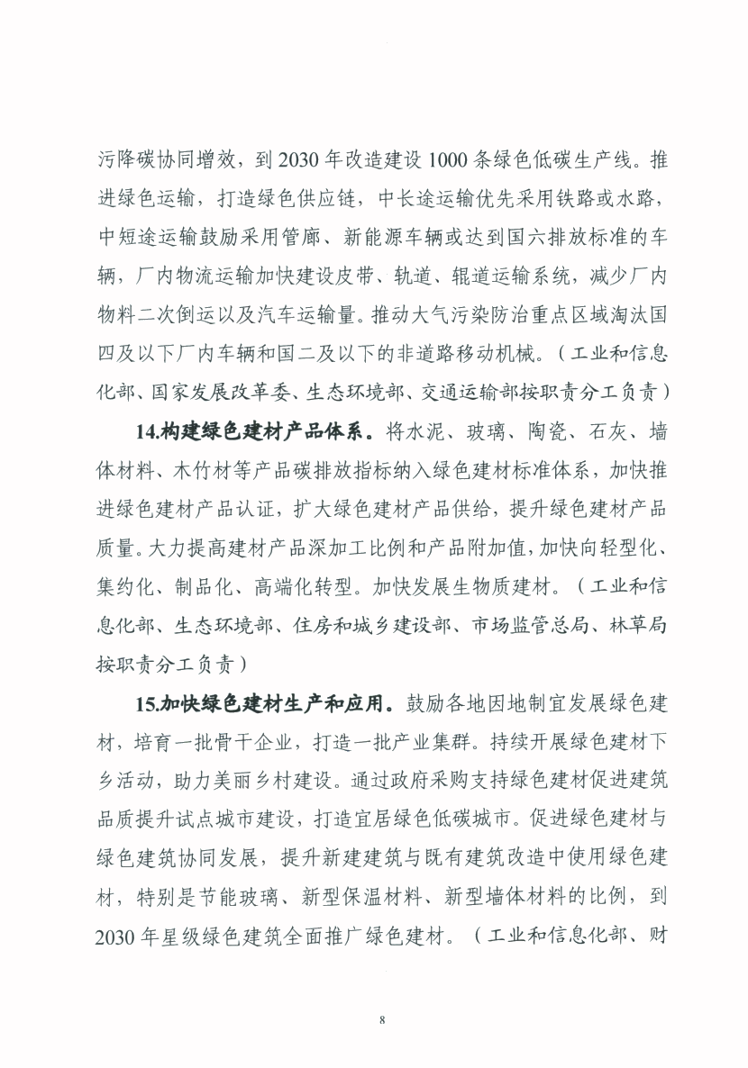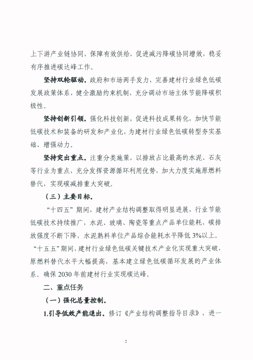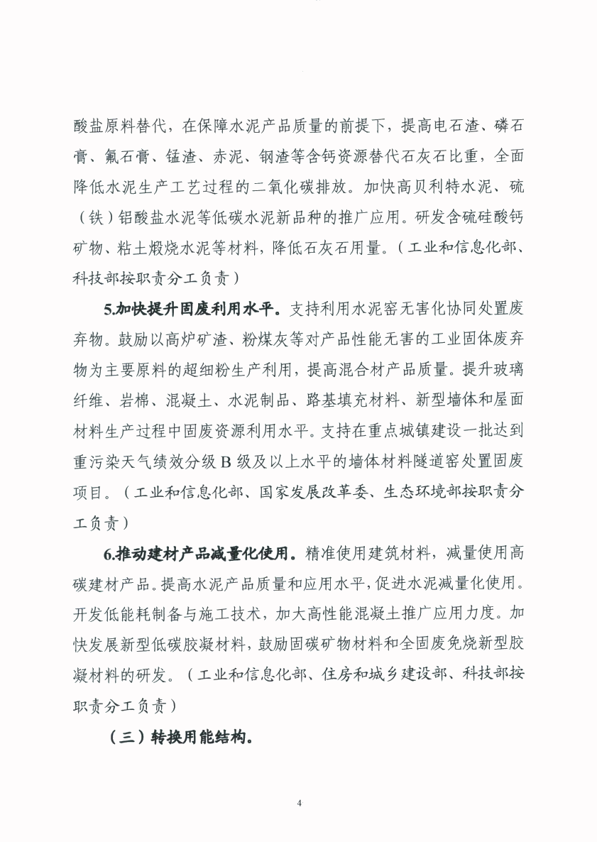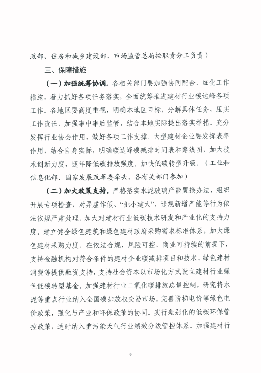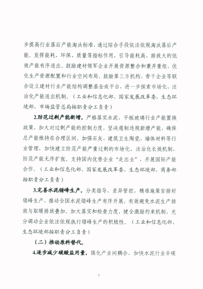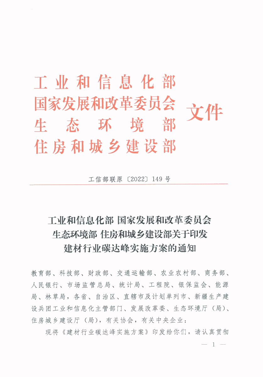 关于转发工业和信息化部 国家发展和改革委员会 生态环境部 住房和城乡建设部关于印发建材行业碳达峰实施方案的通知