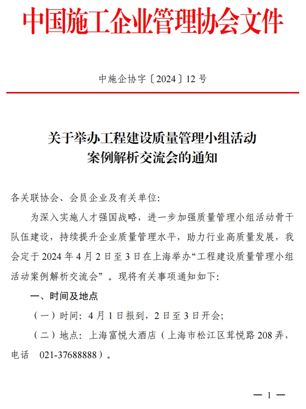 关于转发《关于举办工程建设质量管理小组活动案例解析交流会的通知》