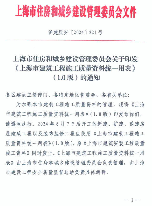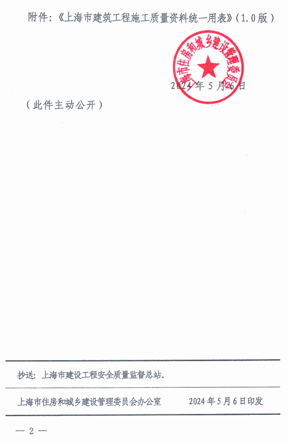 关于转发“关于印发《上海市建筑工程施工质量资料统一用表》(1.0版)的通知”