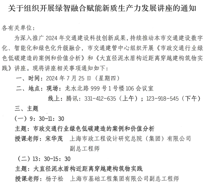关于转发“关于组织开展绿智融合赋能新质生产力发展讲座的通知”