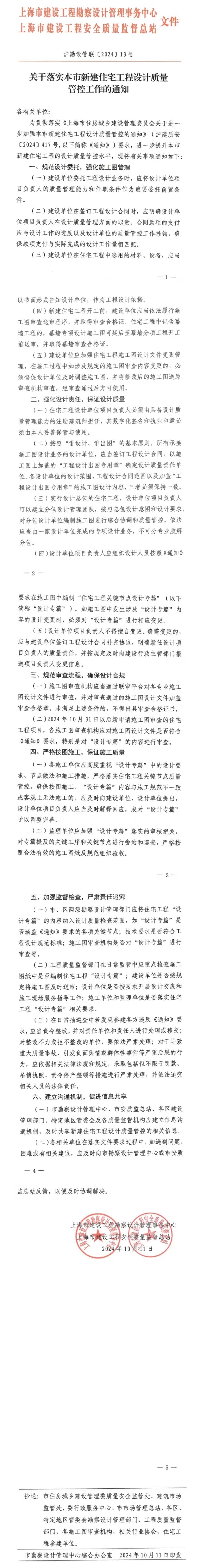 转发“关于落实本市新建住宅工程设计质量管控工作的通知”