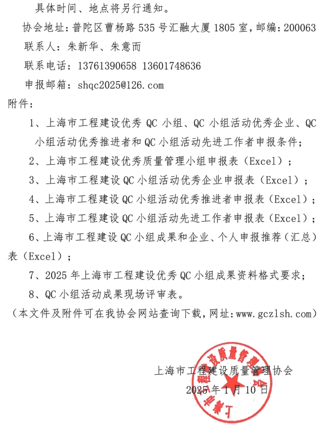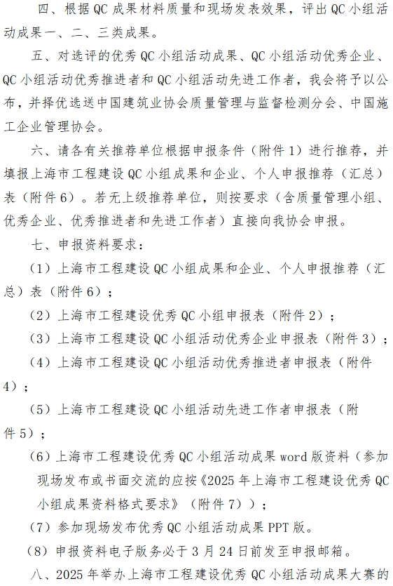 关于举办2025年上海市工程建设优秀QC小组活动成果大赛的通知