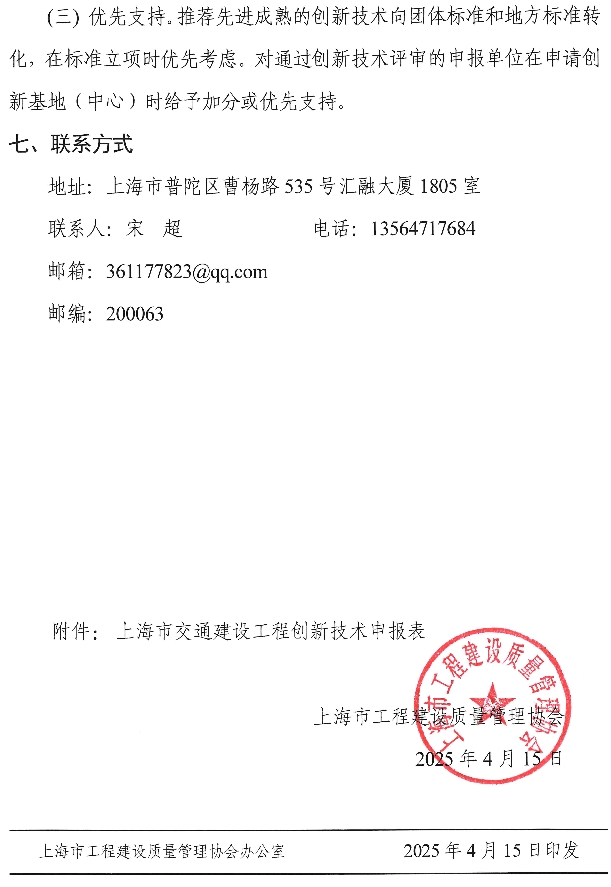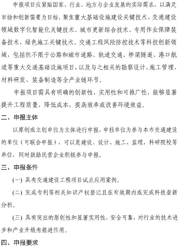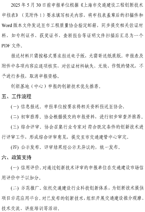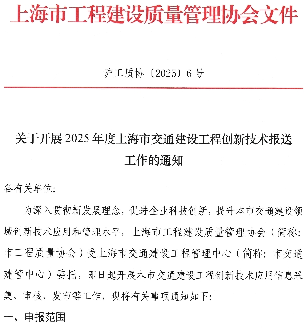关于开展2025年度上海市交通建设工程创新技术报送工作的通知