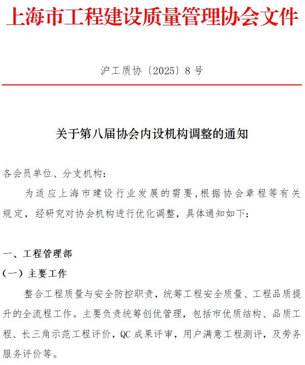 关于第八届协会内设机构调整的通知