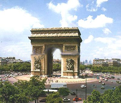 巴黎凯旋门座落在巴黎市中心夏尔戴高乐广场(又称星形广场)中央,是拿破仑为纪念他在奥斯特利茨战役中大败奥俄联军的功绩,于1806年2月下令兴建的。它是欧洲100多座凯旋门中最大的一座。