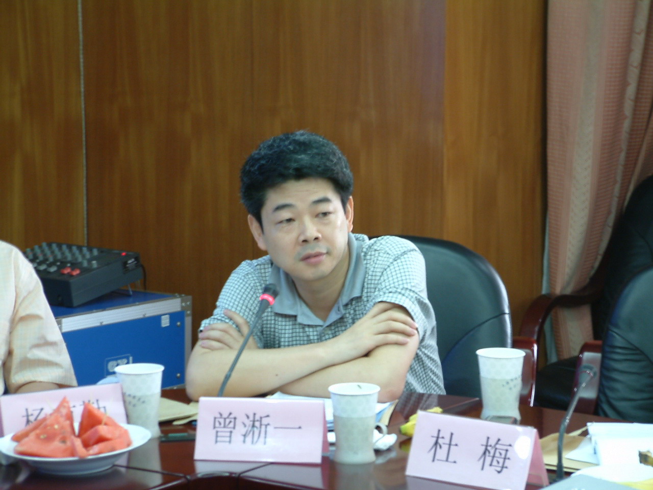 和卢湾区市容管理局刘吉裕副局长(讲话者),右侧为董经纬秘书长。