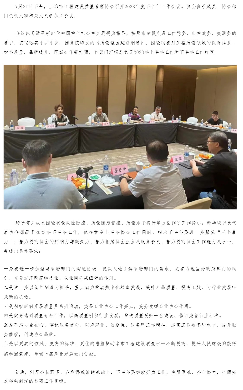 上海市工程建设质量管理协会召开2023年半年度工作会议