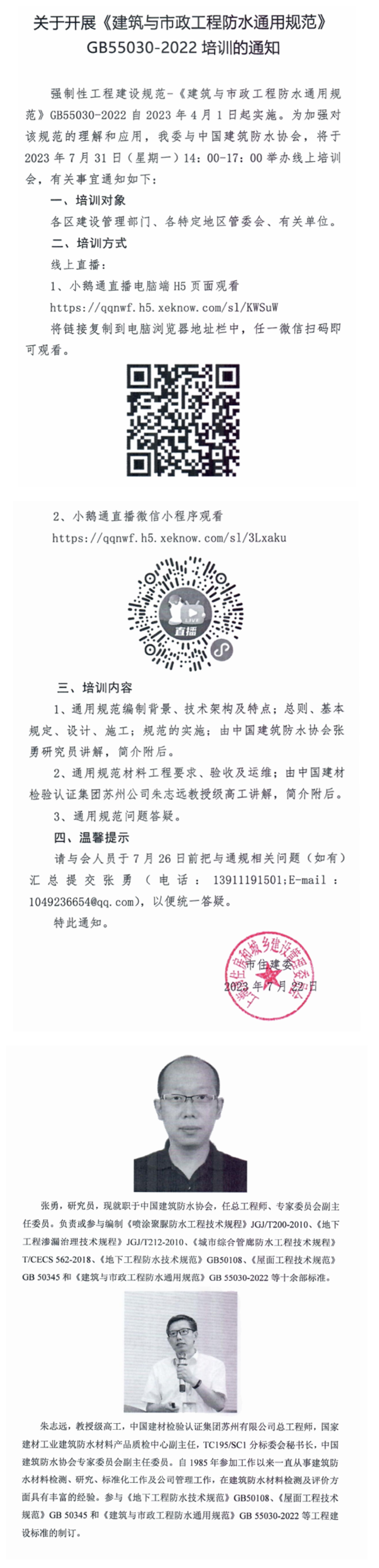 广而告之——上海市住建委即将开展《建筑与市政工程防水通用规范》培训会