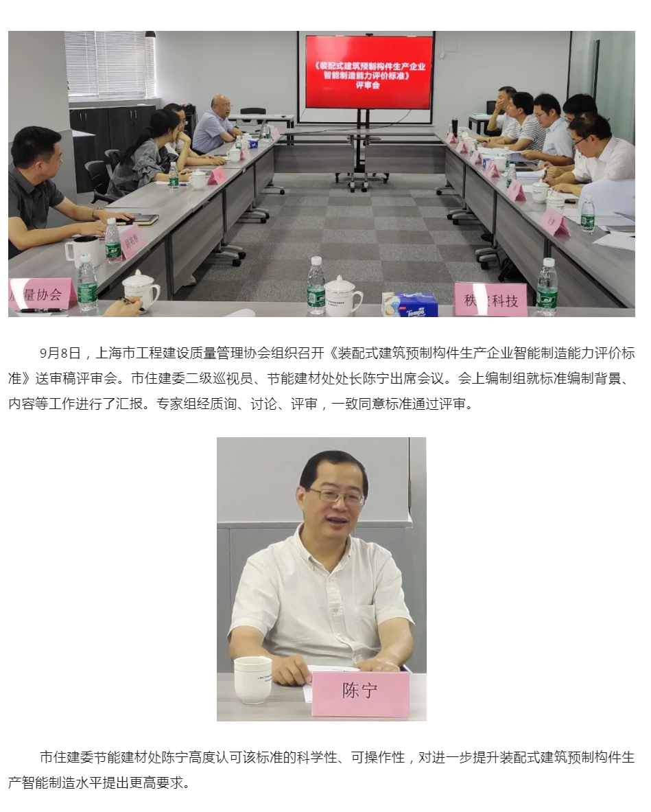 上海市工程建设质量管理协会召开《装配式建筑预制构件生产企业智能制造能力评价标准》送审稿评审会