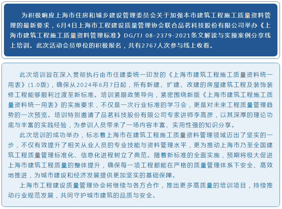 《上海市建筑工程施工质量资料管理标准》条文解读实操分享培训顺利举办